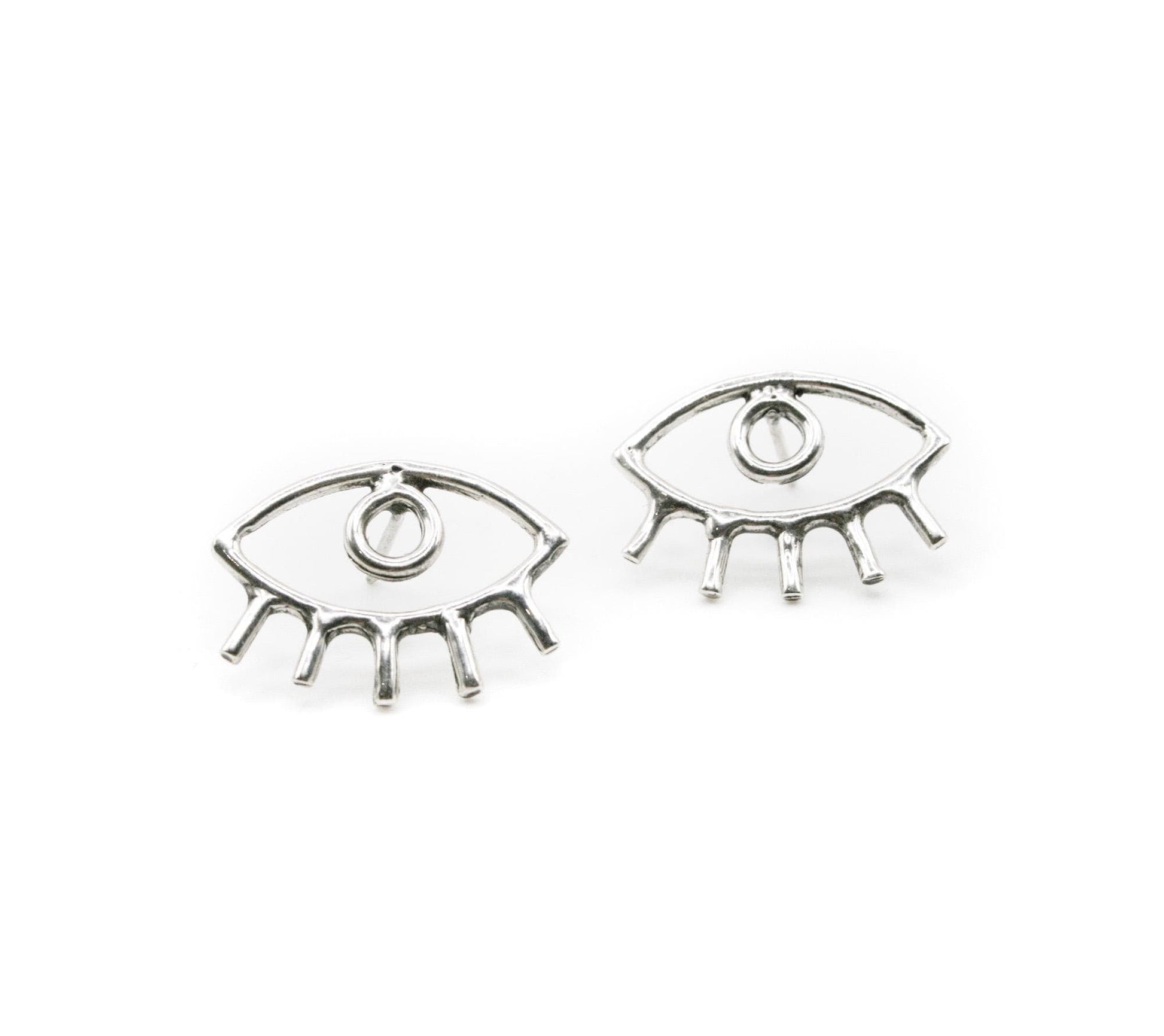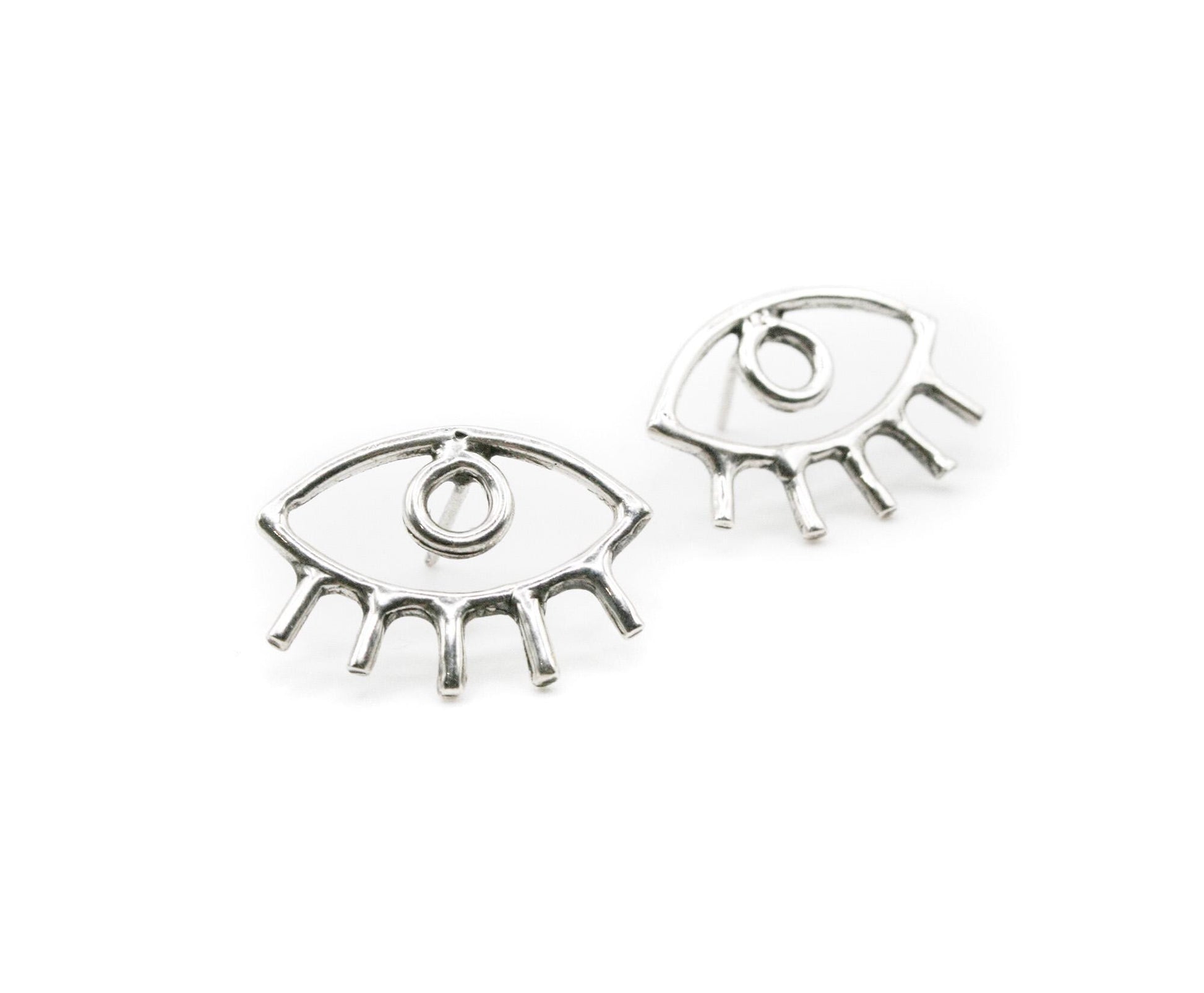 These elegant evil eye stud earrings are crafted from genuine 925 sterling silver, featuring a minimalist open-outline eye design with delicate lash detailing. The polished silver finish gives them a clean, modern look while the symbolic eye motif adds meaning and character. Lightweight and comfortable, these sterling silver studs are perfect for everyday wear, whether styled alone or paired with other minimalist jewelry pieces. Features Authentic 925 Sterling Silver Eye outline design with lash detail Polished finish Lightweight stud style Minimalist and symbolic aesthetic Suitable for daily wear