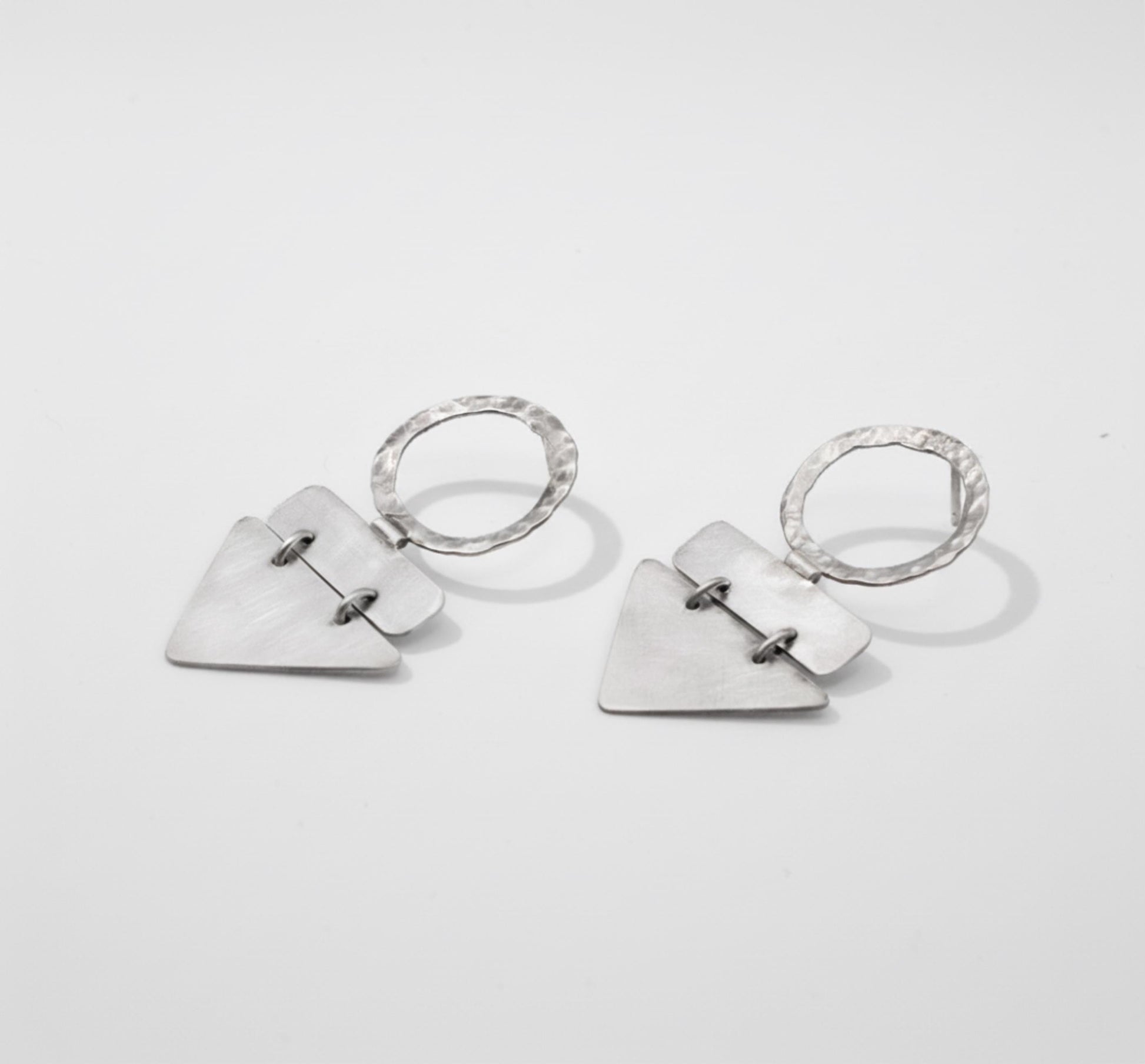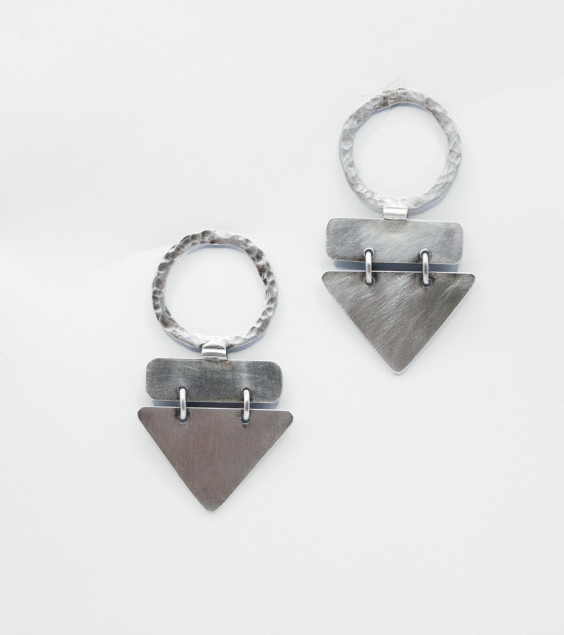 Handmade Sterling Silver Geometric Dangle Earrings – Textured Circle & Triangle Statement Jewelry