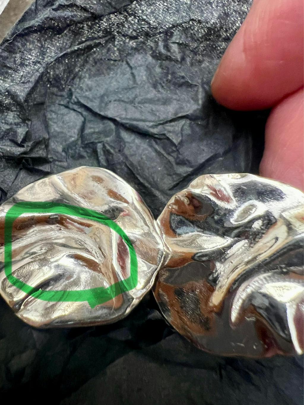 I just wanted to submit a photo of these very nice earrings. The one that has a green circle on it shows paste like flaw that is pretty hard to see so I will just try them on like this because I don’t know what the seller would want to do.